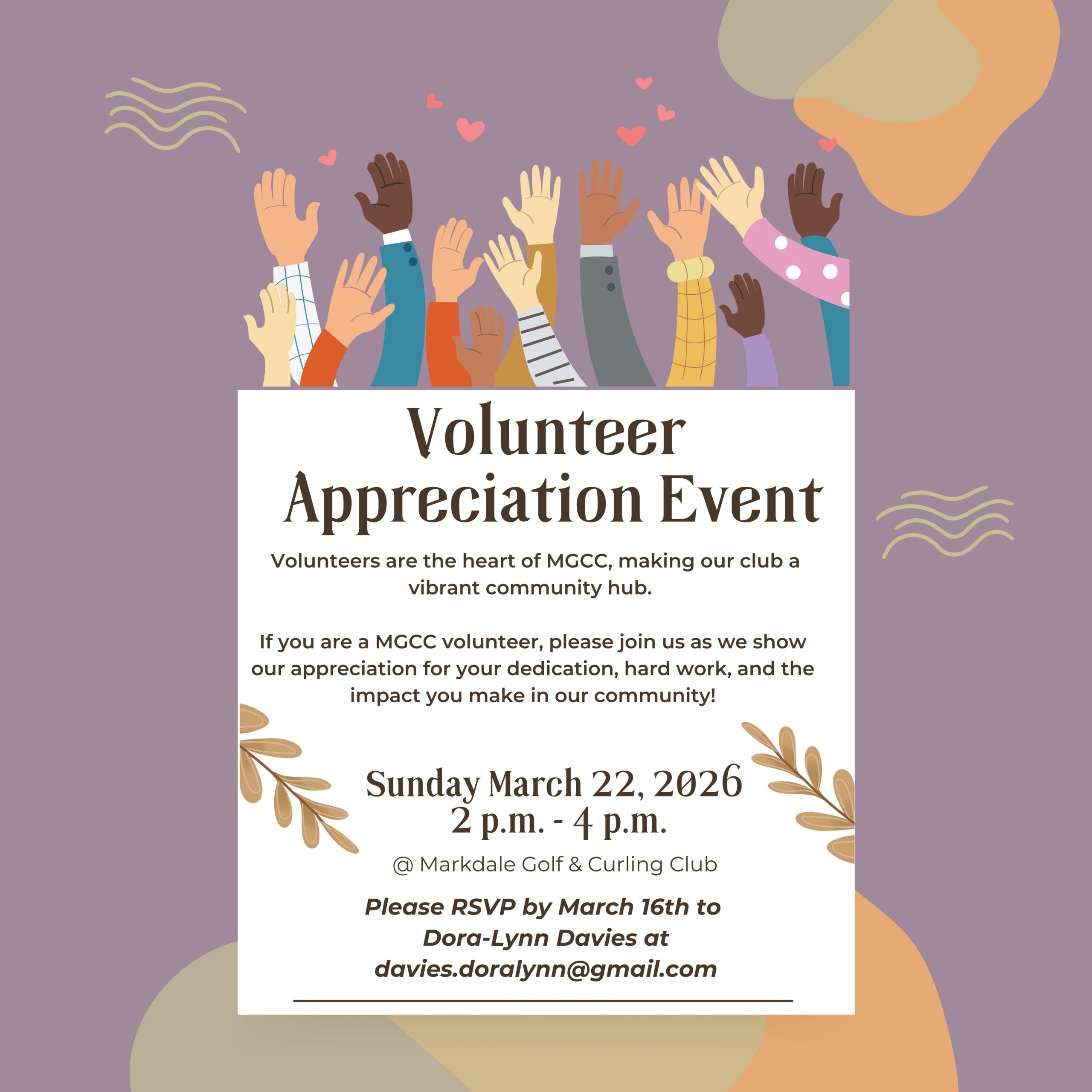 If you are a MGCC volunteer, we invite you to join us on April 27th from 2 p.m. – 4 p.m. for our Volunteer Appreciation Event as we honor those who give so much of their time and energy.